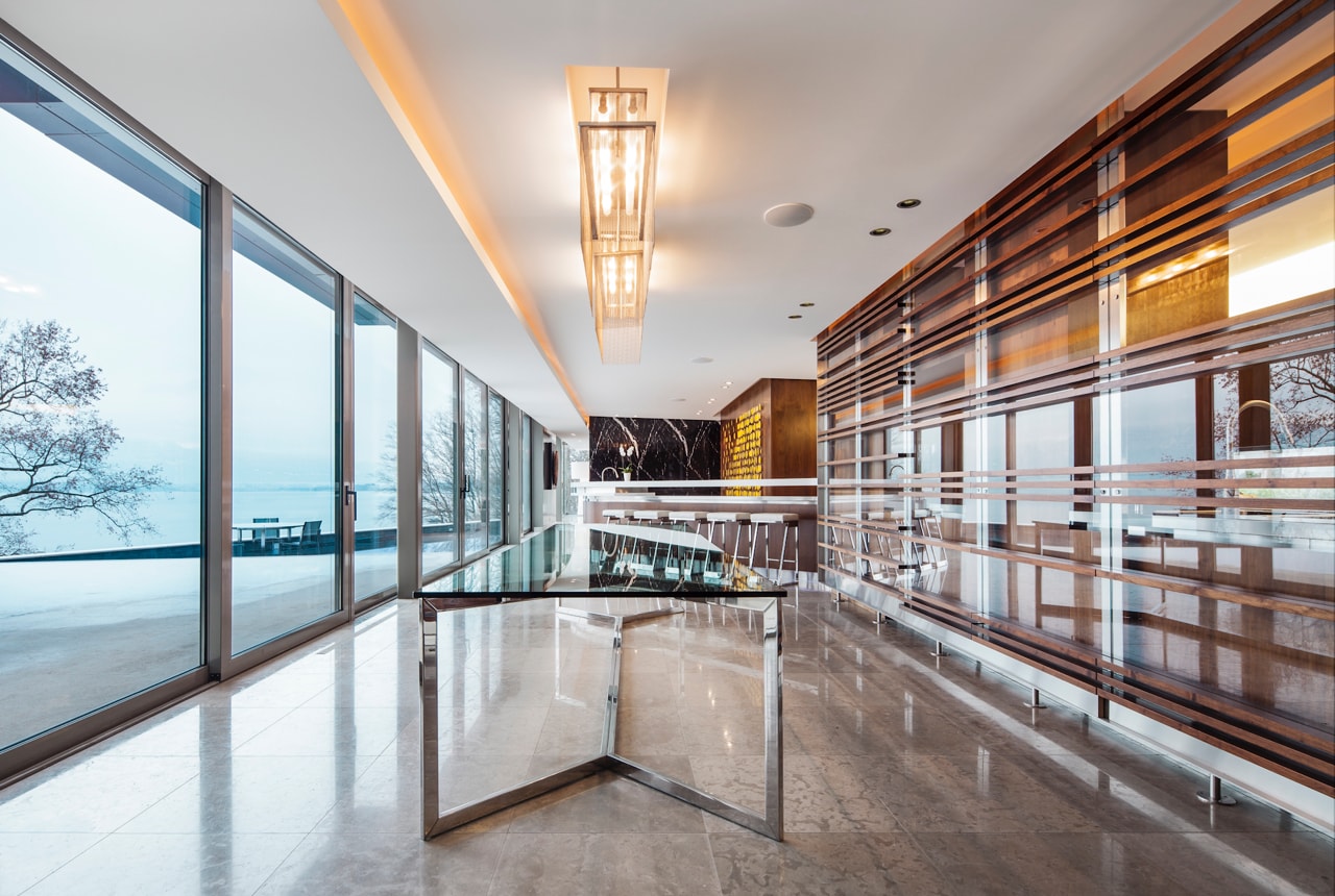 Situated on the shores of Lake Geneva, this sumptuous 13-room villa has a total living area of 1’134m2, a usable surface area of approximately 1’772m2 and enjoys an exceptional location “feet in the water”.